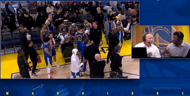 末节还剩3分47秒,芬奇挑战库里犯规成功,库里第二次犯规。